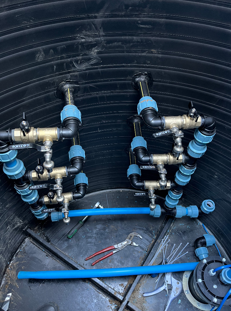 В срок осуществляем процесс монтажа и завершаем установку. Кессон готов к использованию.
