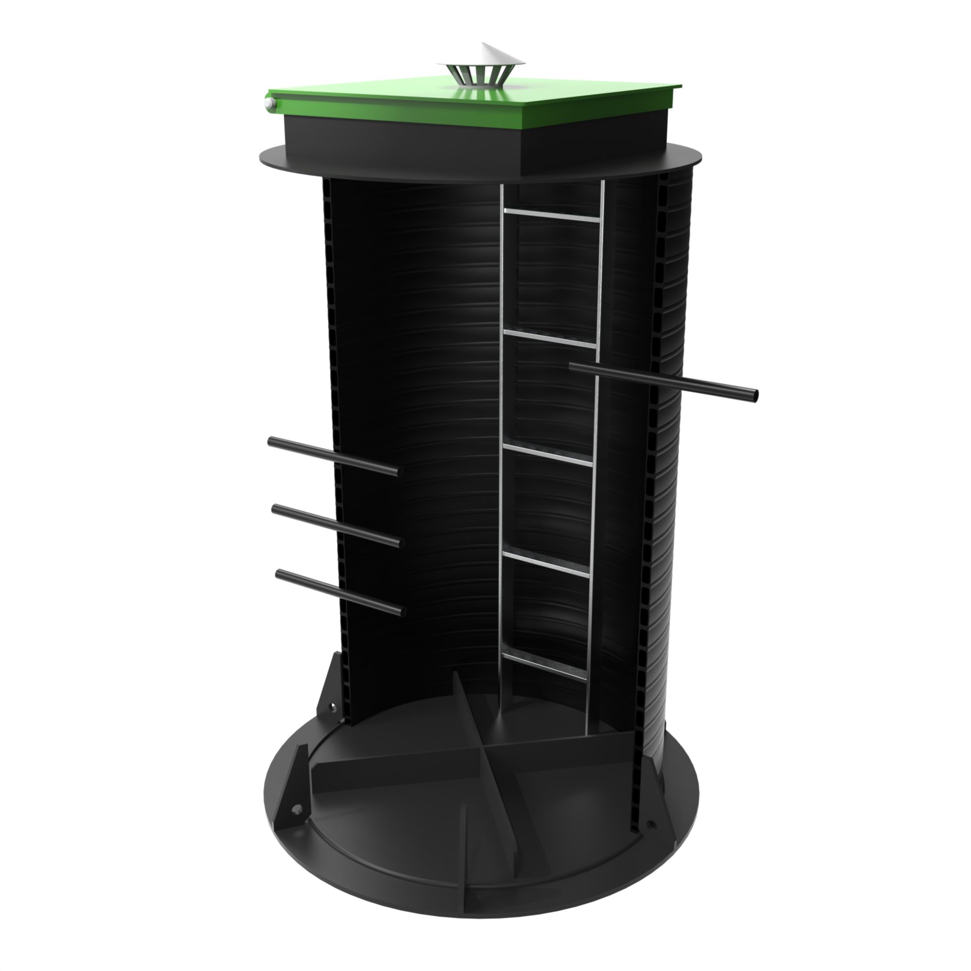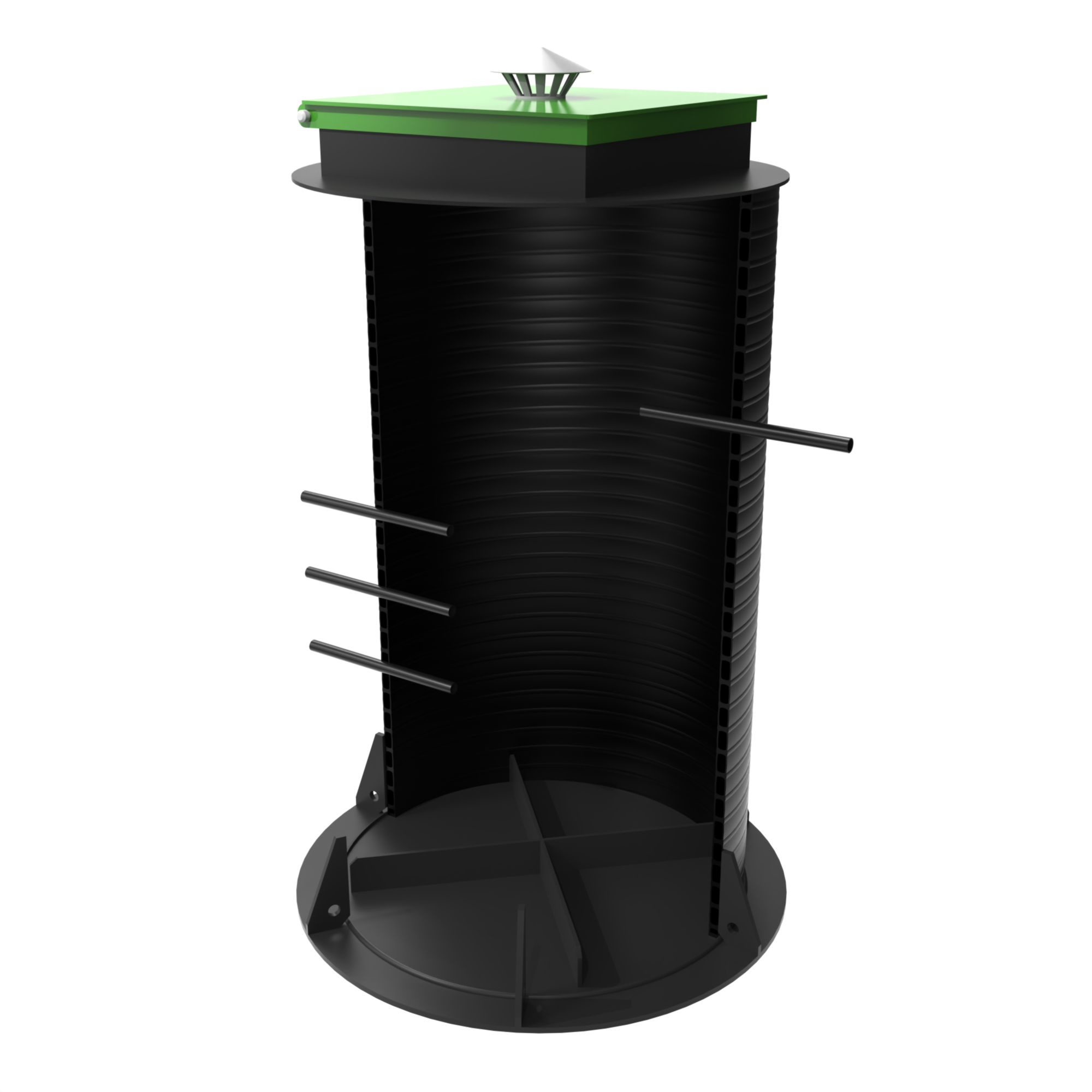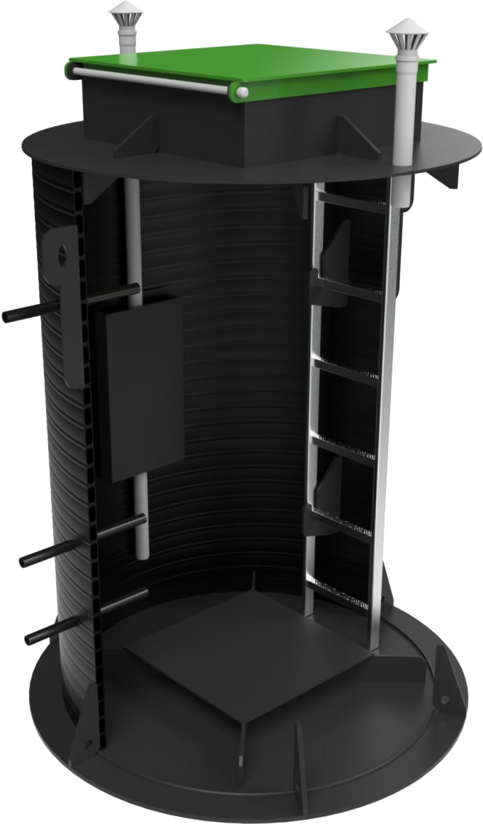 Все модели изготовлены из спиральновитой трубы. Корпус имеет толщину 25 мм и выполнен из первичного полиэтилена марки ПЭ100. Материал корпуса устойчив к низким и высоким температурам, что позволяет использовать его в любых погодных условиях.