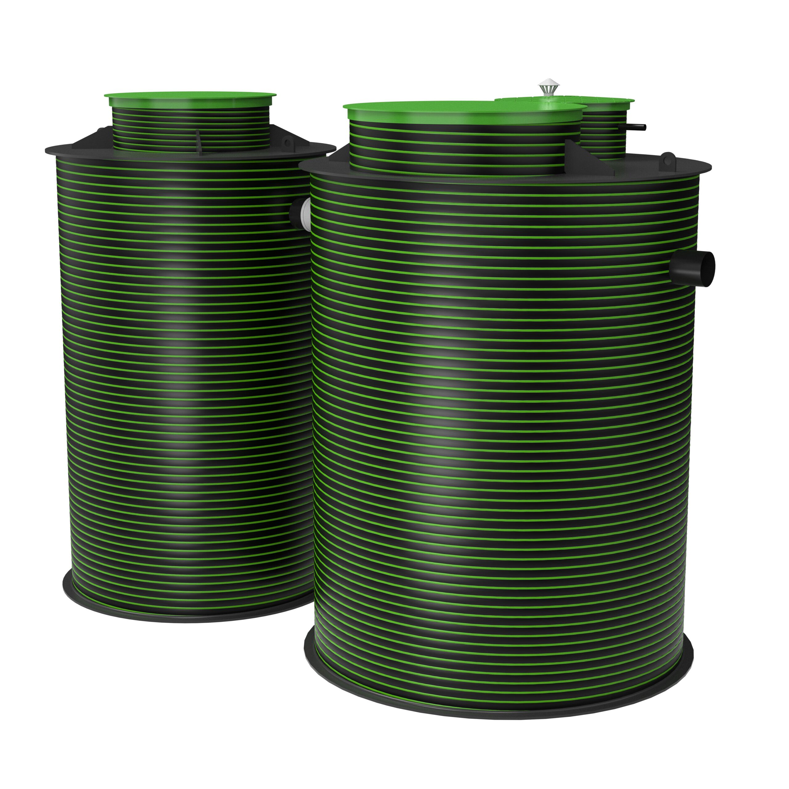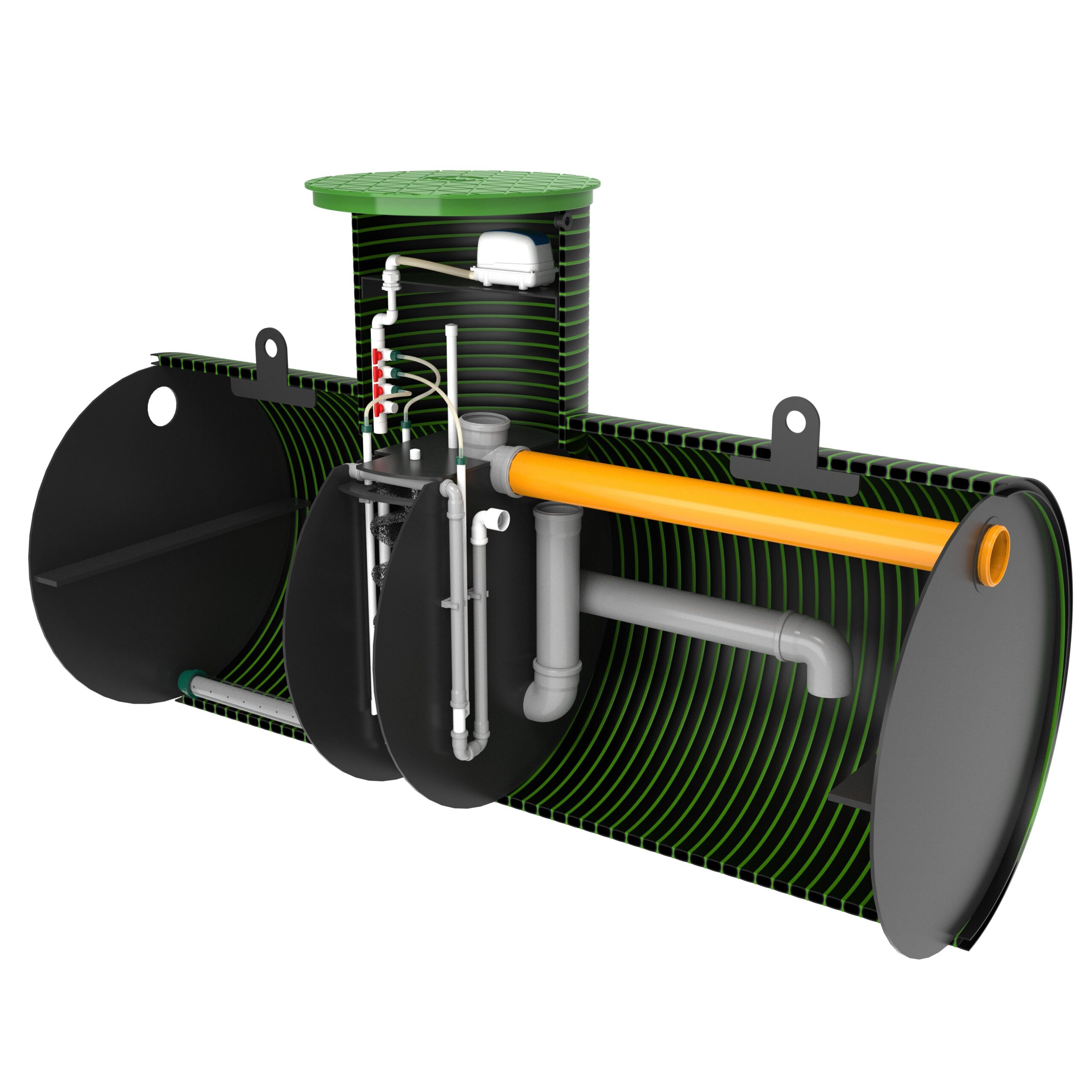 Горизонтальная станция биологической очистки KANN серии ECO имеет производительность от 400 до 1500 л/сутки и рассчитана на количество проживающих от 2 до 8 человек. Принцип работы станции основан не мелко-пузырчатой аэрации, которую создает аэрационная установка, поставляемая в комплекте. За счет подачи воздуха в станцию, а также дополнительных механизмов очистки происходит полная очистка стоков до уровня 98%. Полученная на выходе вода на выходе не имеет запаха, прозрачна и бесцветна. Такую воду можно дренировать в грунт.
