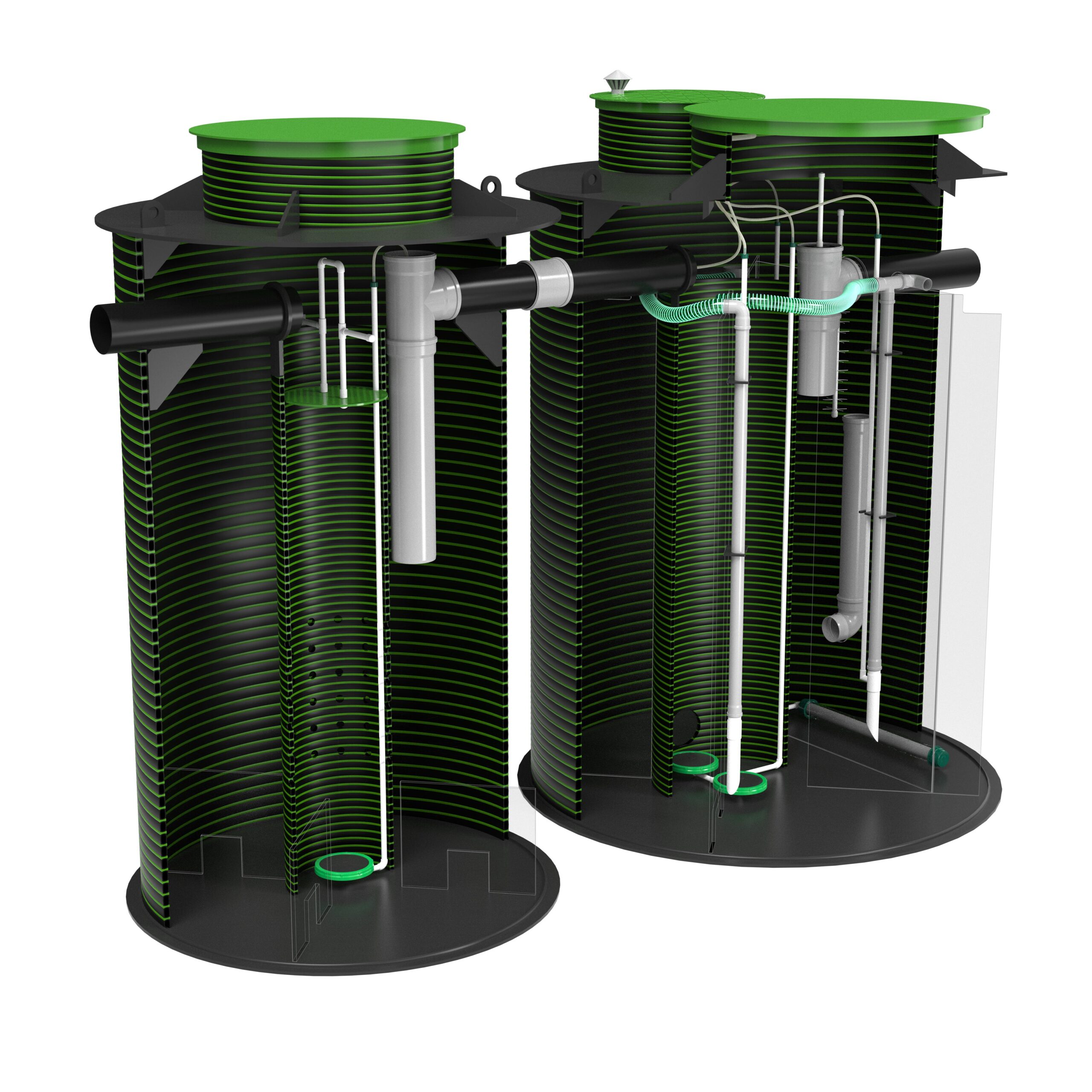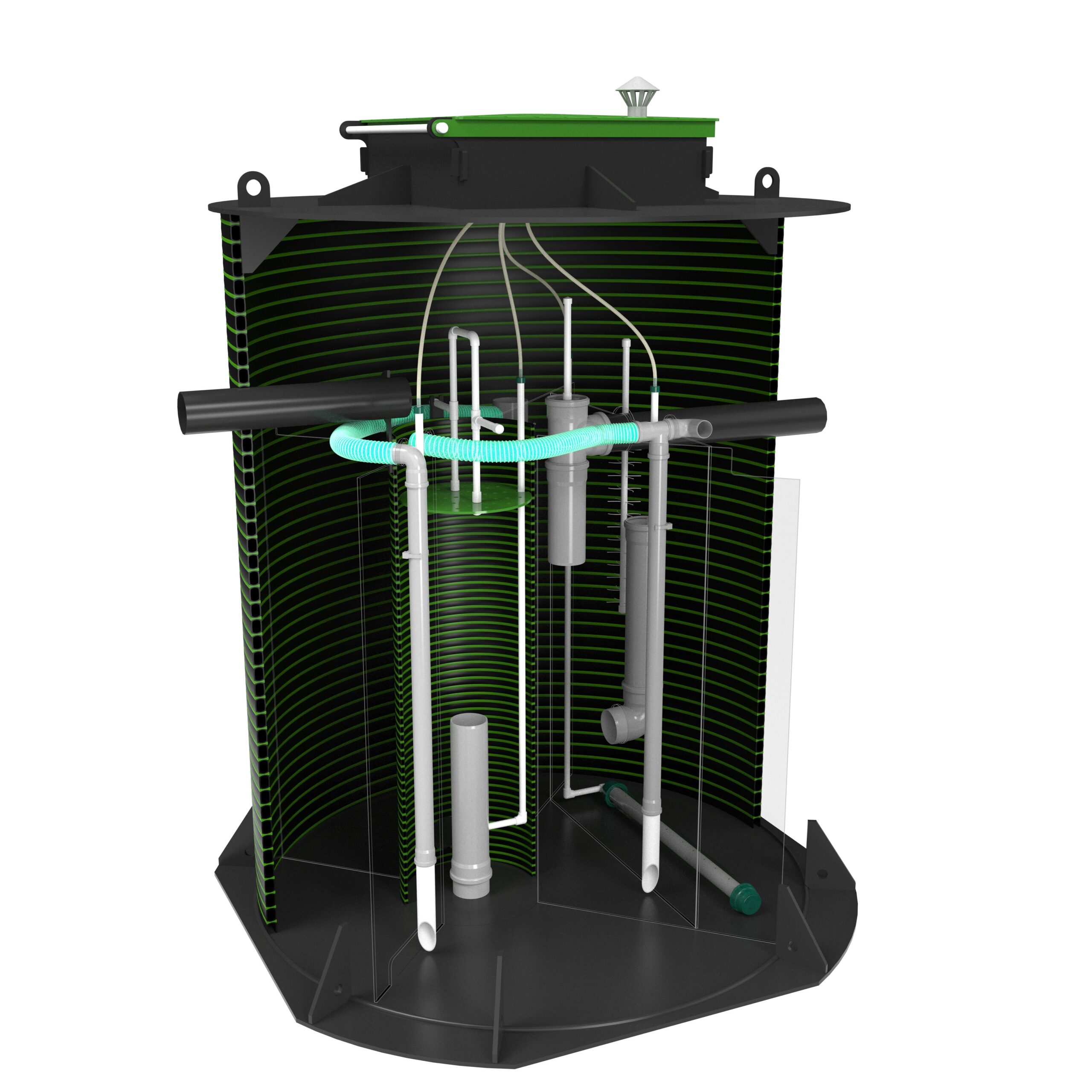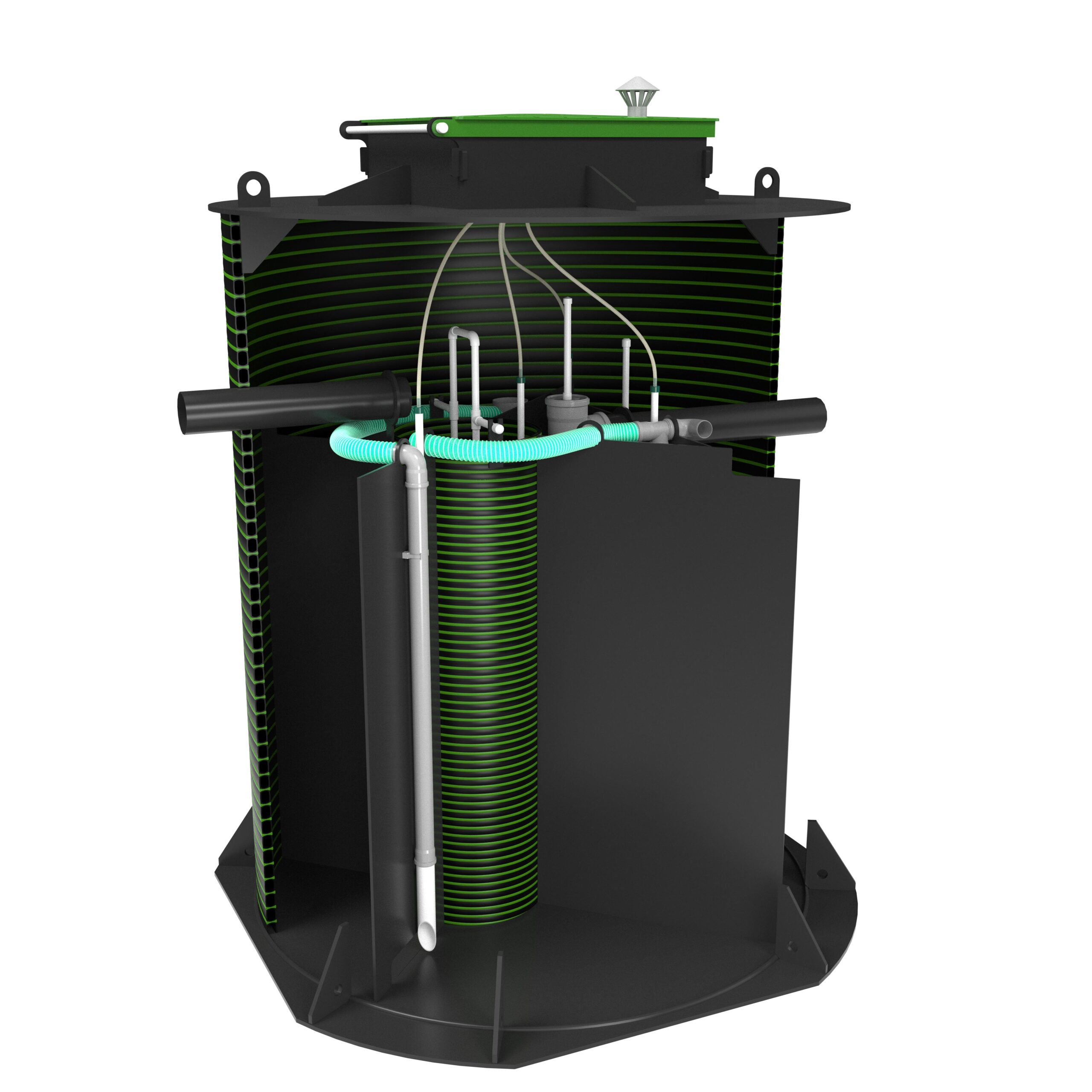 Вертикальные станции биологической очистки KANN серии ULTRA PRO имеет производительность от 5 до 20 м3/сутки и рассчитаны на количество проживающих от 20 до 100 человек. Принцип работы станций основан не мелко-пузырчатой аэрации, которую создает аэрационная установка, поставляемая в комплекте. За счет подачи воздуха в станцию, а также дополнительных механизмов очистки происходит полная очистка стоков до уровня 65%. Полученная на выходе вода не имеет запаха, прозрачна и бесцветна. Такую воду можно дренировать в грунт.